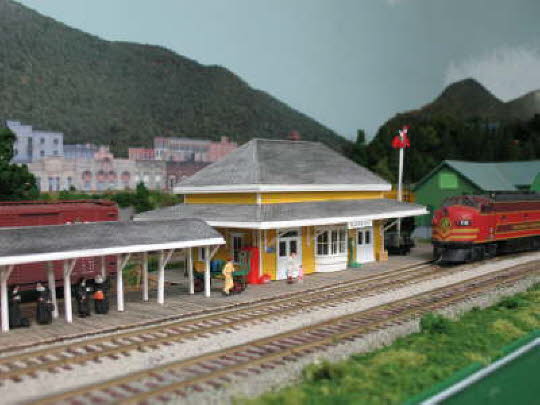 Paul’s home layout is the Northern Vermont Railway. Constructed in his basement in a 35’ x 12.5’ room, the NVR is a freelanced HO scale model railroad set in October, 1954. It’s an East-West line with its western terminal at Adams, Vermont. It runs east through northern Vermont and terminates in Hamilton, New Hampshire. There are four major interchange points with prototype railroads. The D&H interchanges with the NVR via a car ferry operation that docks at Adams Terminal located in Adams. The Canadian National & Central Vermont Railways enter the NVR main line at St. Jean Junction and have running rights into Franklin, Vermont. The Canadian Pacific Railway plus the Boston & Maine enter the NVR main line at Granite Junction and have running rights into Franklin, Vermont. The Maine Midland Railroad plus the Bangor & Aroostook Railroad enter the NVR Bedford Branch Line at Birch Junction. They travel down the NVR Bedford Branch and NVR main line to interchange at Hamilton, New Hampshire. The CNR, CVR, CPR, B&M, MMR and BAR are staged from yards in adjacent rooms. There are three car ferries to handle the D&H interchange traffic. The room size is 35’ by 12.5’. The NVR main line travels around the room twice crossing the room entrance on bridges mounted on a swing out section. Most visible track work including nearly 100 turnouts is hand-laid on individual wooden ties using code 100, 83 and 70 rail. A North Coast Engineering 5 amp Power Pro system provides DCC control. Most locomotives are sound equipped. The NVR diesel power includes: F3’s, NW-2’s, BL-2’s and GP 7’s all custom painted in maroon, red and black with gold lettering. The steam locomotives remaining on the roster include: 2-8-0 Consolidations, 2-8-2 Mikados, 4-8-2 Mountains plus 0-6-0 and 0-8-0 switchers.